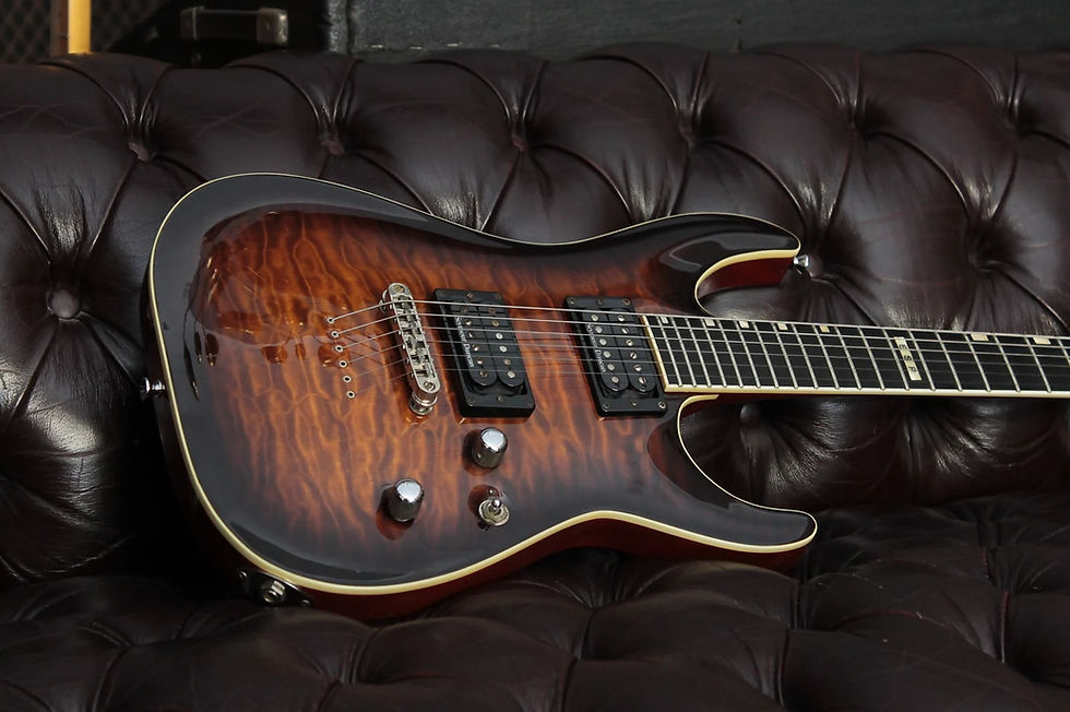 Needless to say, the guitar plays incredibly with low action and crazy playability. It’s in 100% original condition including a beautiful Ebony fretboard with frets in great condition, Sperzel locking machine heads, string and neck through design and a crazy flame maple top!