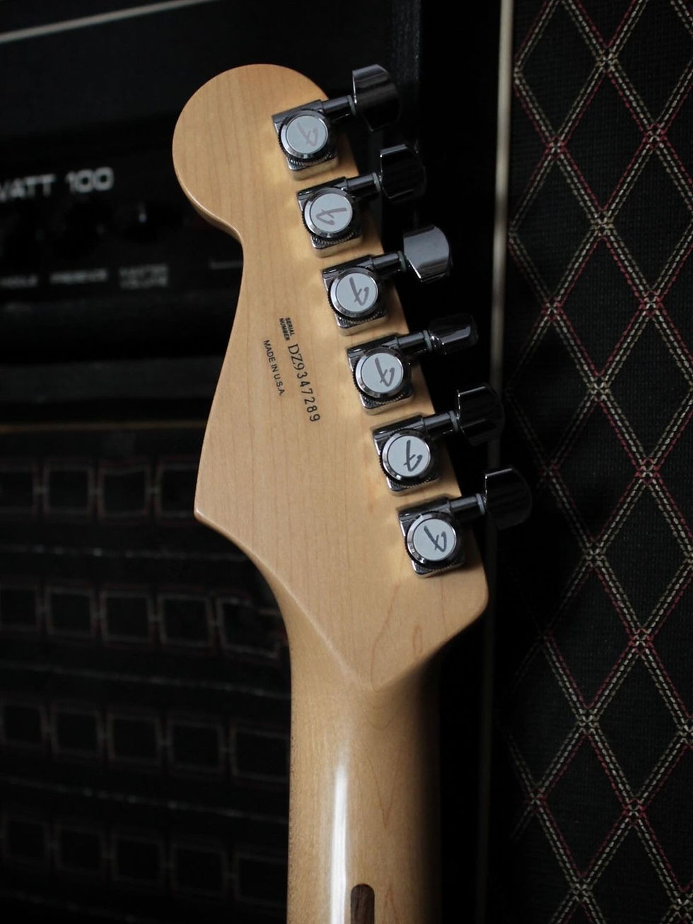 The guitar is 100% original and features some cool modern appointments like a sculpted neck heel, two point tremolo, locking machine heads , 9.5-14” compound radius, metal roller nut, two noiseless single coil pickups and an atomic bridge humbucking pickup!